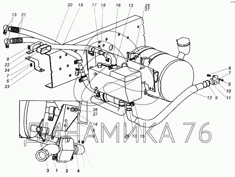 Перечень комплектующих от Установка подогревателя. Hydronic 10 на МАЗ-437040 (Зубренок)