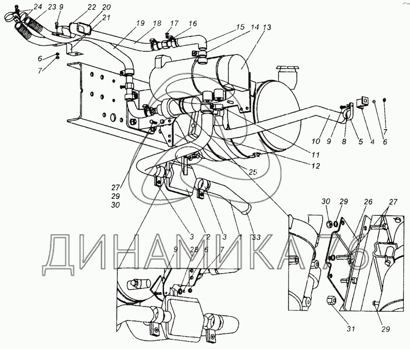 Перечень комплектующих от Установка подогревателя. Thermo 90S на МАЗ-437040 (Зубренок)
