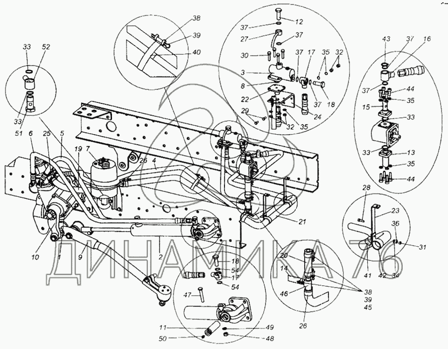 Перечень комплектующих от Установка рулевого управления на МАЗ-437040 (Зубренок)