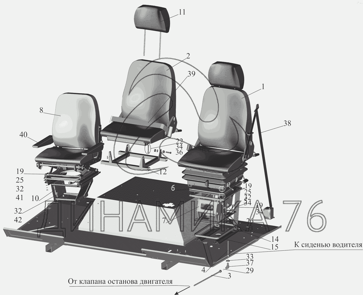 Установка и пневмопитание сидений — МАЗ-437041 (Зубренок):
