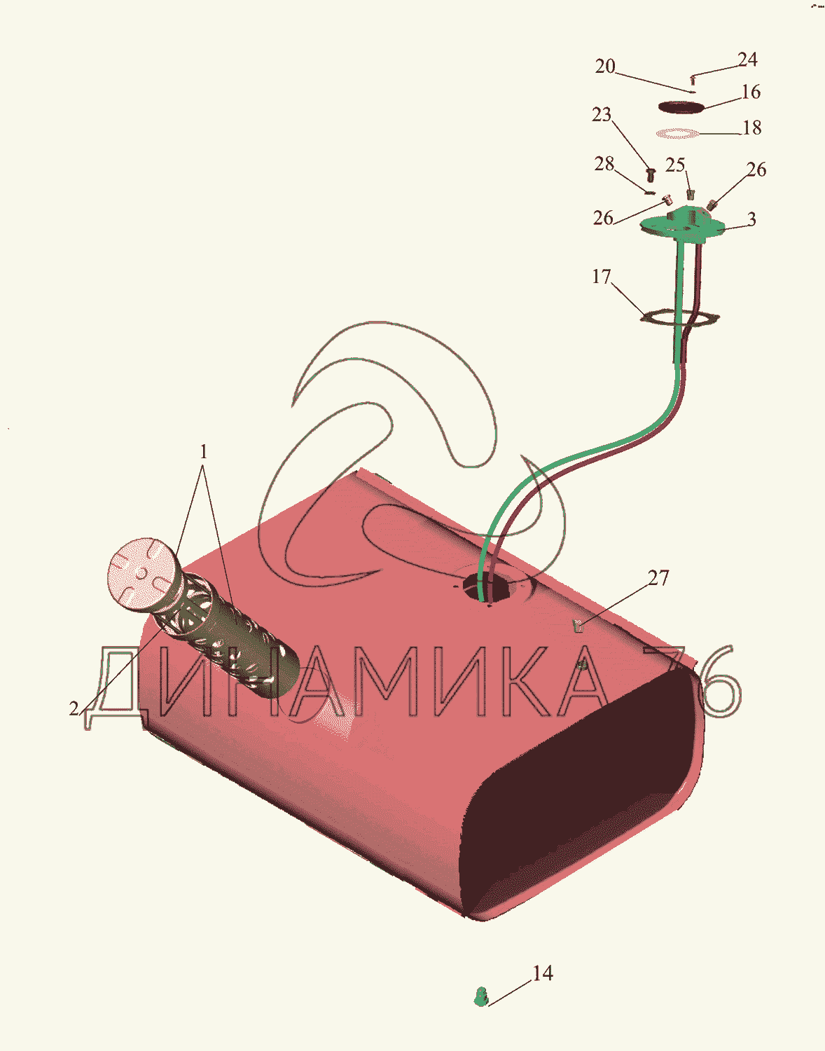 Перечень комплектующих от Бак топливный 437030-1101010 на МАЗ-437043 (Зубренок)