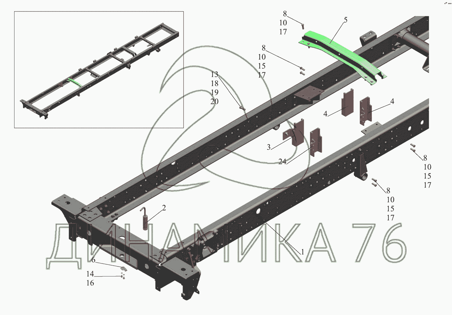 Перечень комплектующих от Рама 437043-2800010 на МАЗ-437043 (Зубренок)