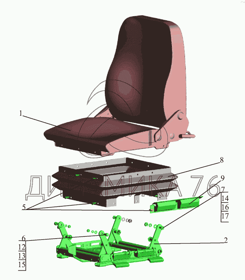 Перечень комплектующих от Сиденье водителя 6430-6800010 на МАЗ-437043 (Зубренок)