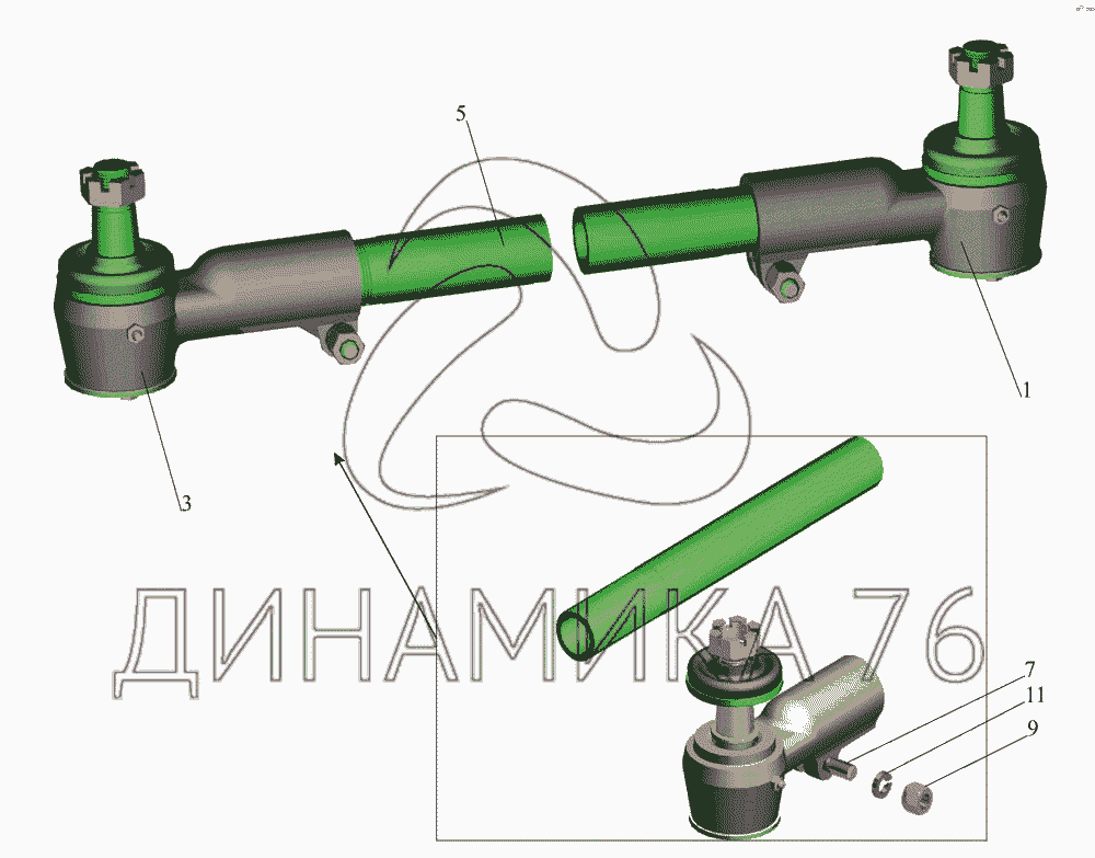Перечень комплектующих от Тяга поперечная 4370-3003052 на МАЗ-437043 (Зубренок)