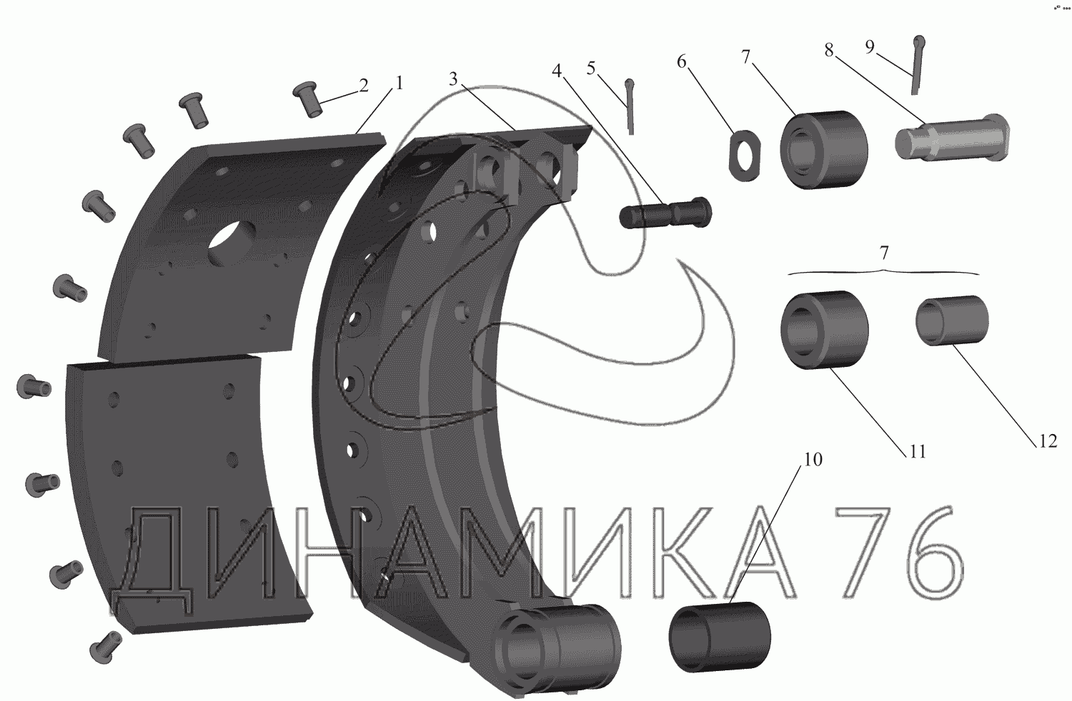 Перечень комплектующих от Колодка тормоза на МАЗ-437130 (Зубренок)