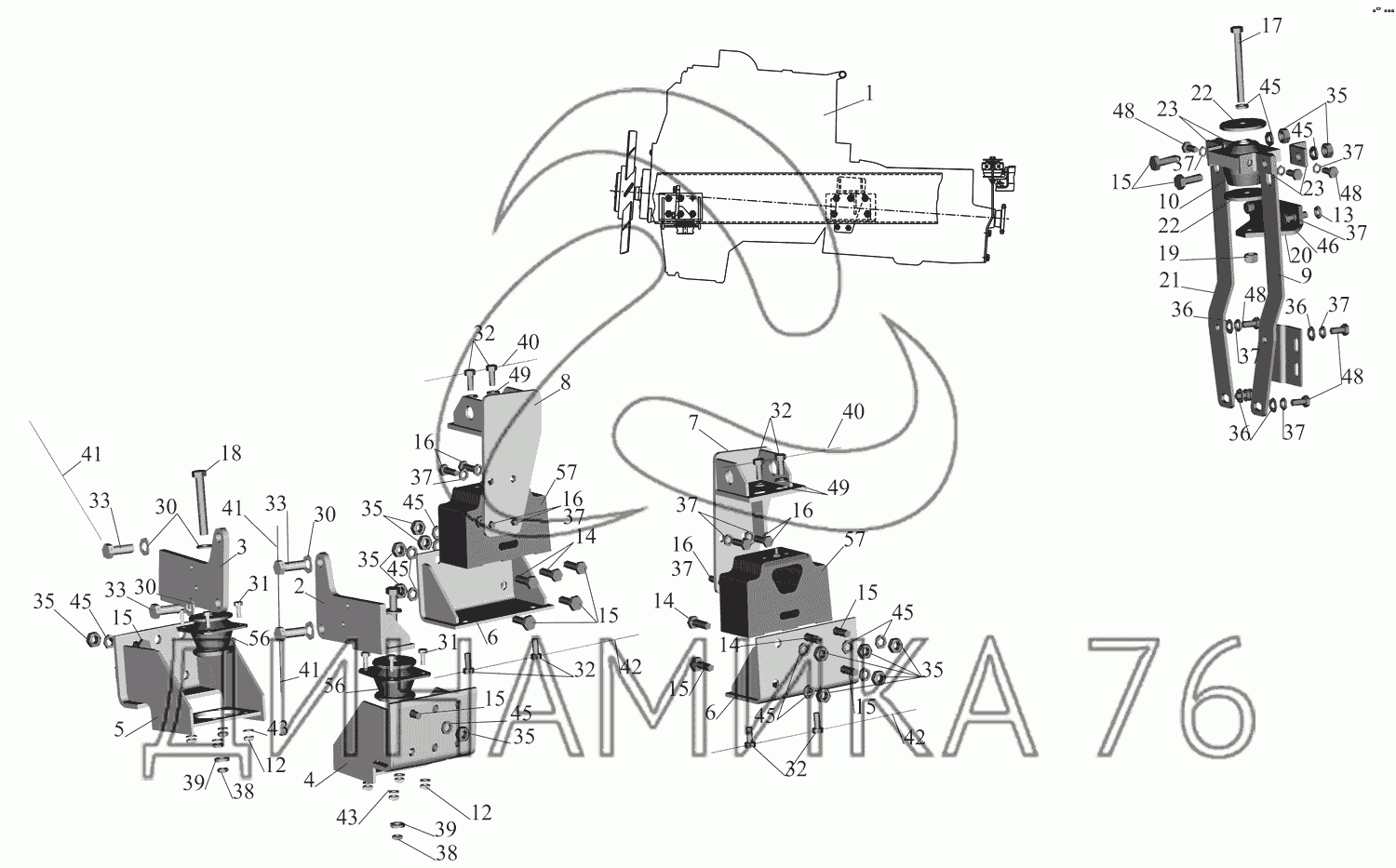 Схемы запчастей предназначены для справочных целей! Мы продаем не все запчасти от Крепление двигателя 437030-1001002 на МАЗ-437130 (Зубренок), представленные в этом списке.