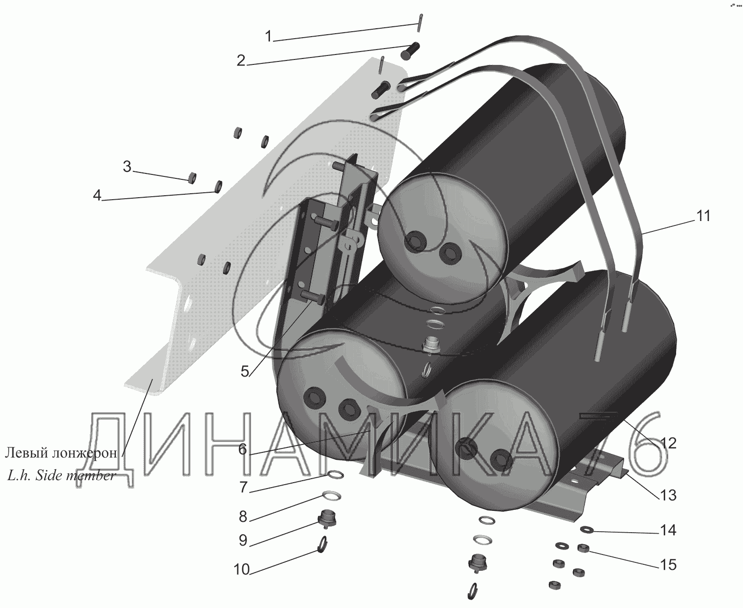 Крепление ресиверов 4370-3513004 на МАЗ-437130 (Зубренок) (до 2008 г.)