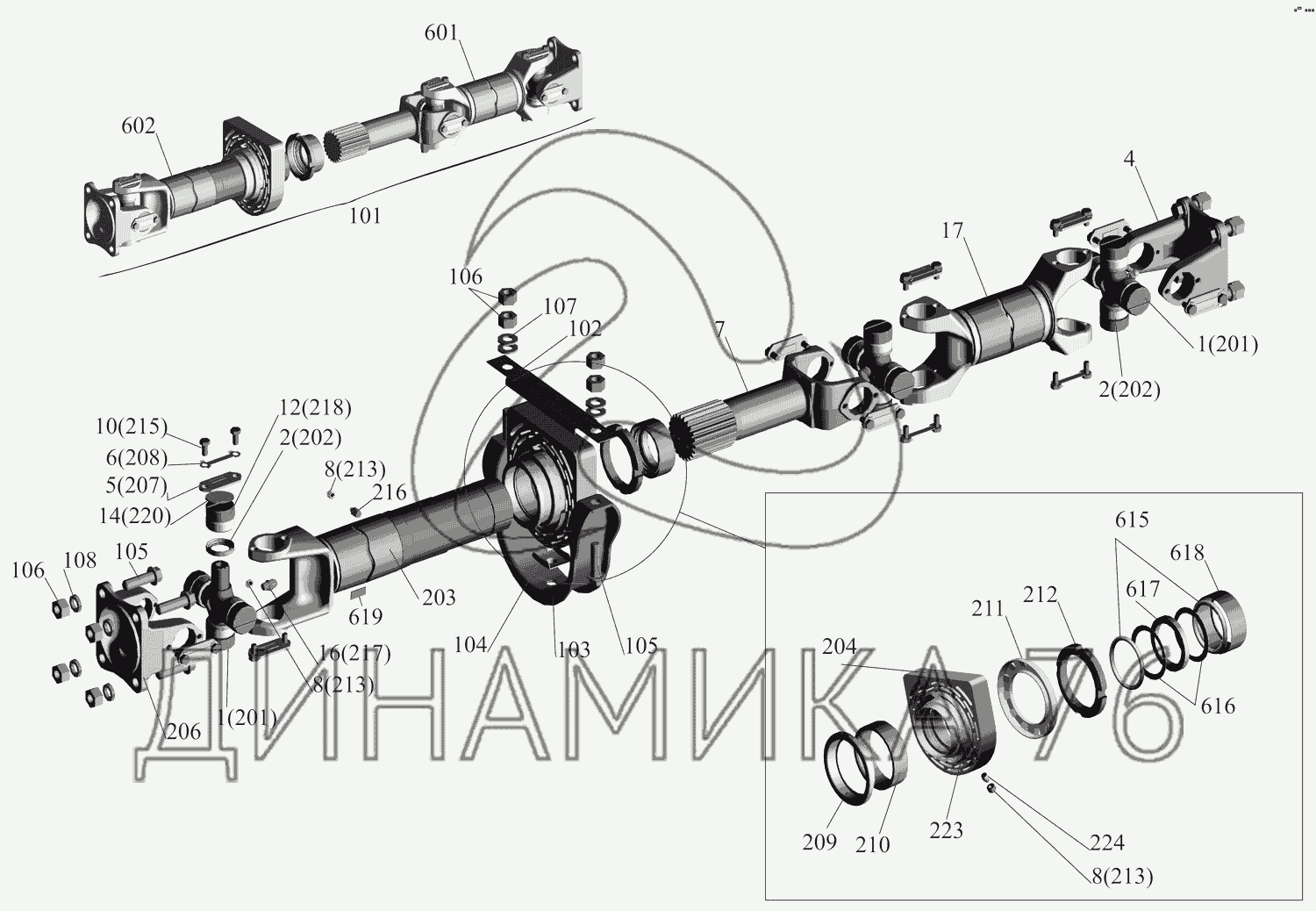 Перечень комплектующих от Установка карданной передачи на МАЗ-437130 (Зубренок)