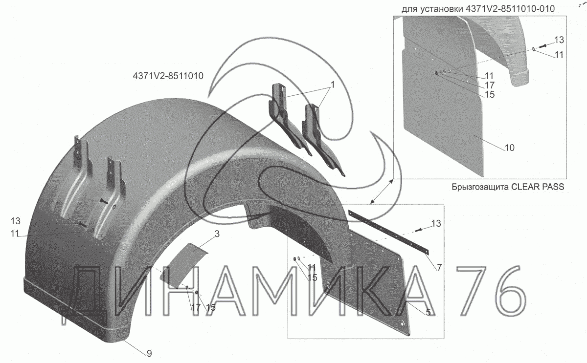 Перечень комплектующих от Брызговик на МАЗ-4371P2-0000421-000