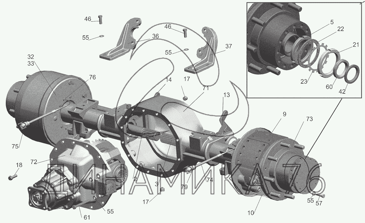Перечень комплектующих от Мост задний на МАЗ-4371P2-0000421-000
