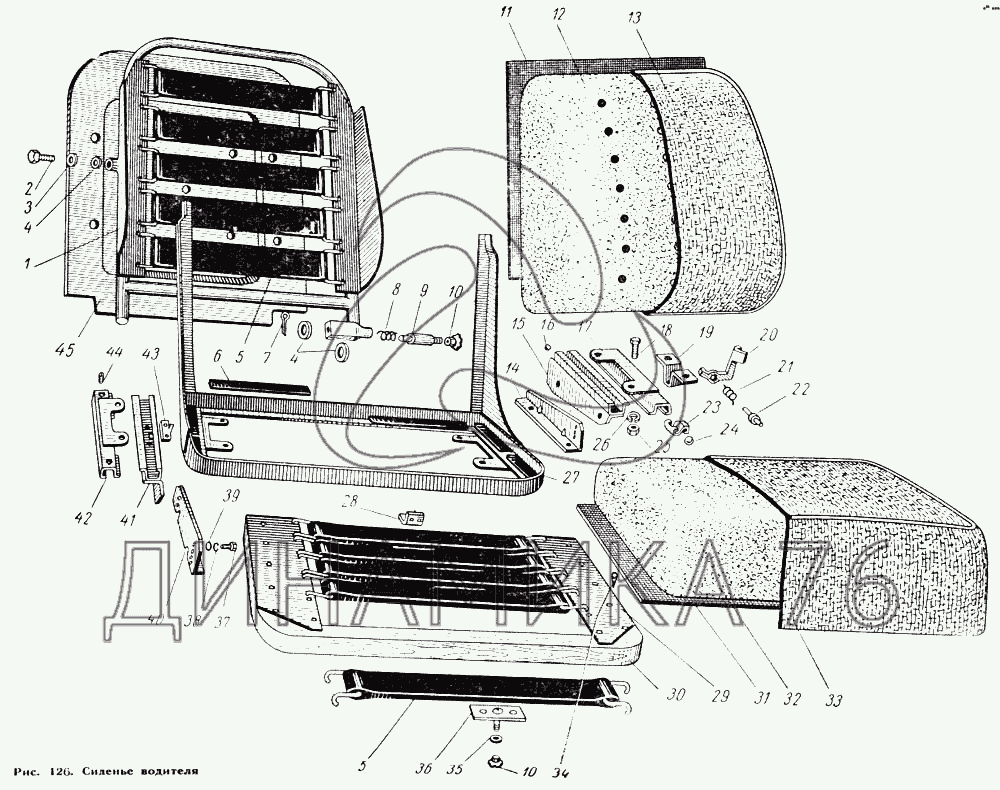 Схемы запчастей предназначены для справочных целей! Мы продаем не все запчасти от Сиденье водителя на МАЗ-500А, представленные в этом списке.