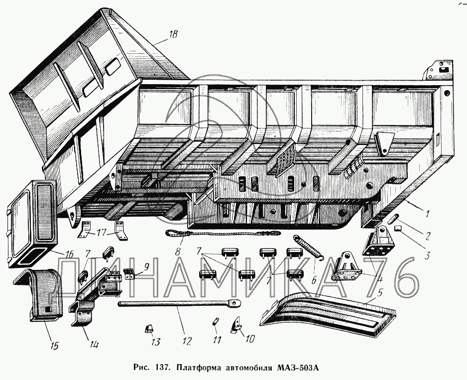 Перечень комплектующих от Платформа автомобиля МАЗ-503А на МАЗ-503А