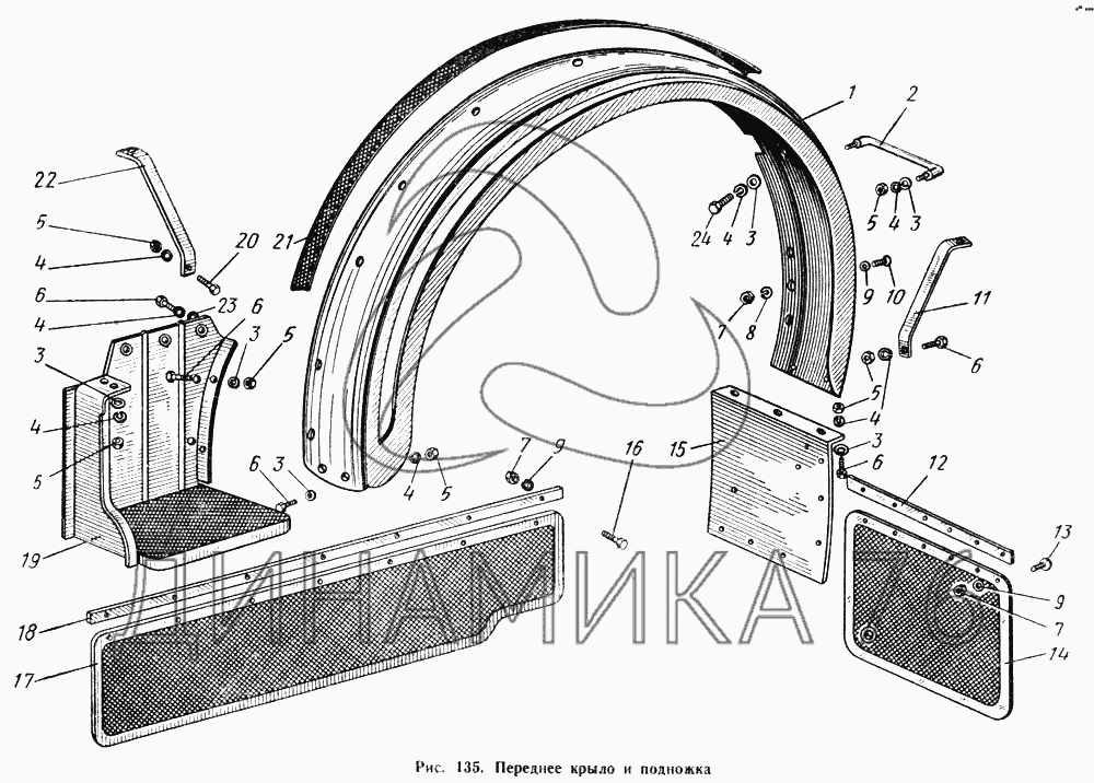 Перечень комплектующих от Переднее крыло и подножка на МАЗ-504А