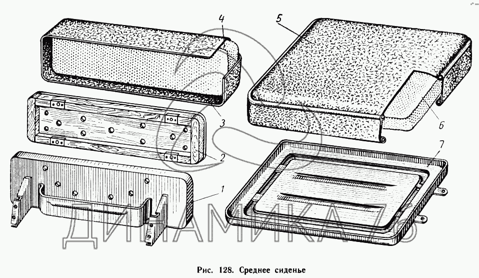 Перечень комплектующих от Среднее сидение на МАЗ-504А