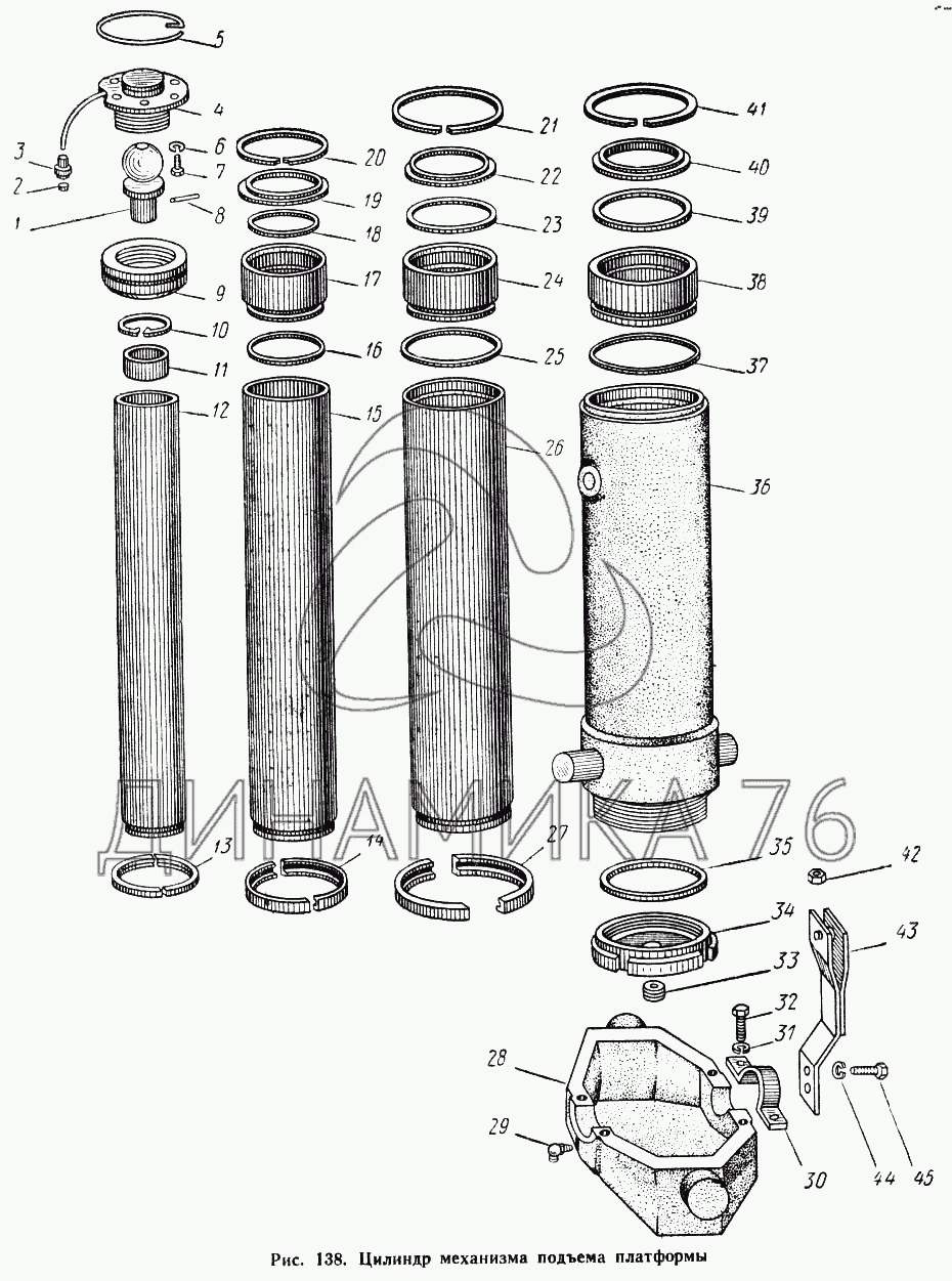 Цилиндр механизма подъема платформы — МАЗ-504А: