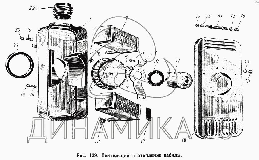 Схемы запчастей предназначены для справочных целей! Мы продаем не все запчасти от Вентиляция и отопление кабины на МАЗ-504А, представленные в этом списке.