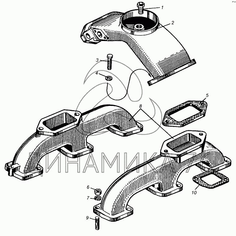 Перечень комплектующих от Коллектор впускной на МАЗ-504В