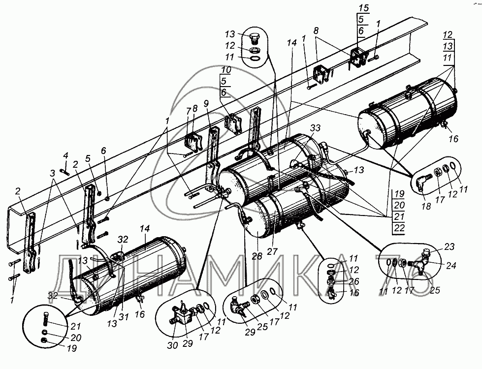 Крепление воздушных баллонов МАЗ-509А на МАЗ-504В (до 2005 г.)