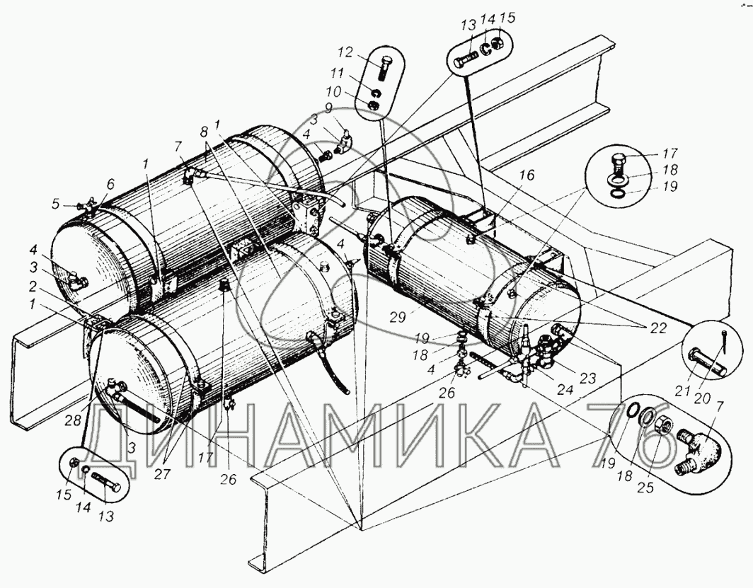 Крепление воздушных баллонов МАЗ-5335 на МАЗ-504В (до 2005 г.)