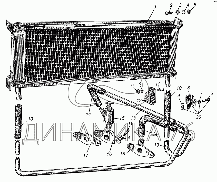 Перечень комплектующих от Радиатор масляный на МАЗ-504В