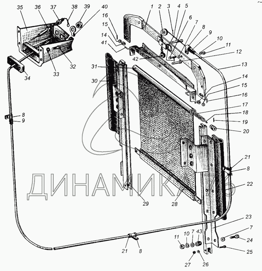 Перечень комплектующих от Шторка радиатора на МАЗ-504В