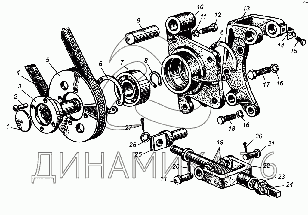 Перечень комплектующих от Устройство натяжное насоса на МАЗ-504В