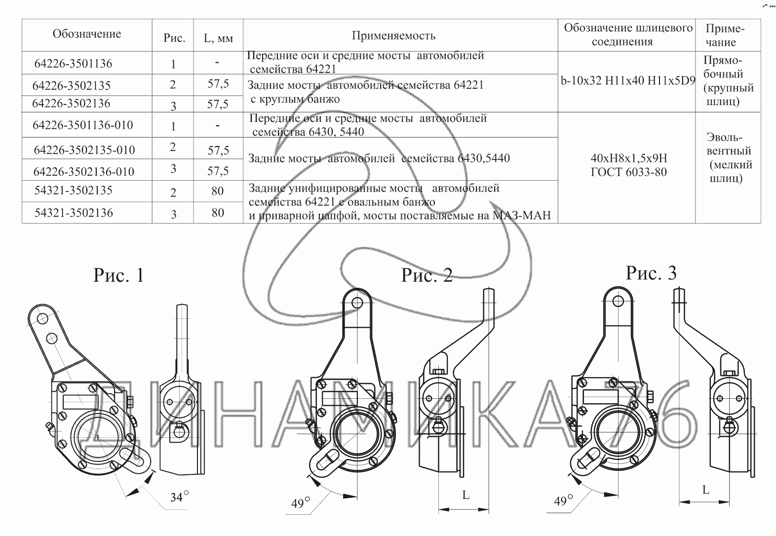 Перечень комплектующих от Автоматические регулировочные рычаги на МАЗ-530905