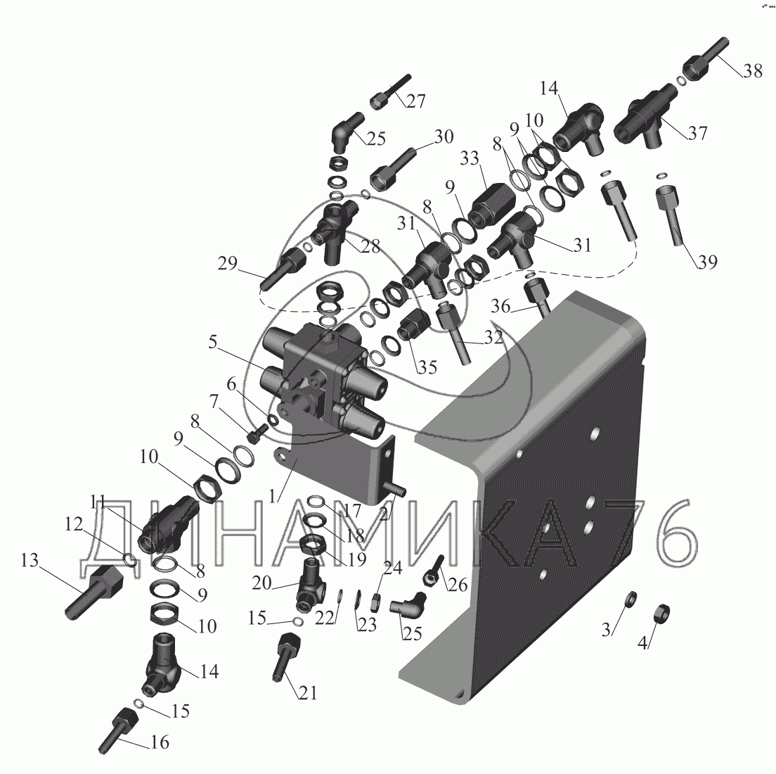 Перечень комплектующих от Крепление клапана четырехконтурного 6430-3515002 на МАЗ-530905