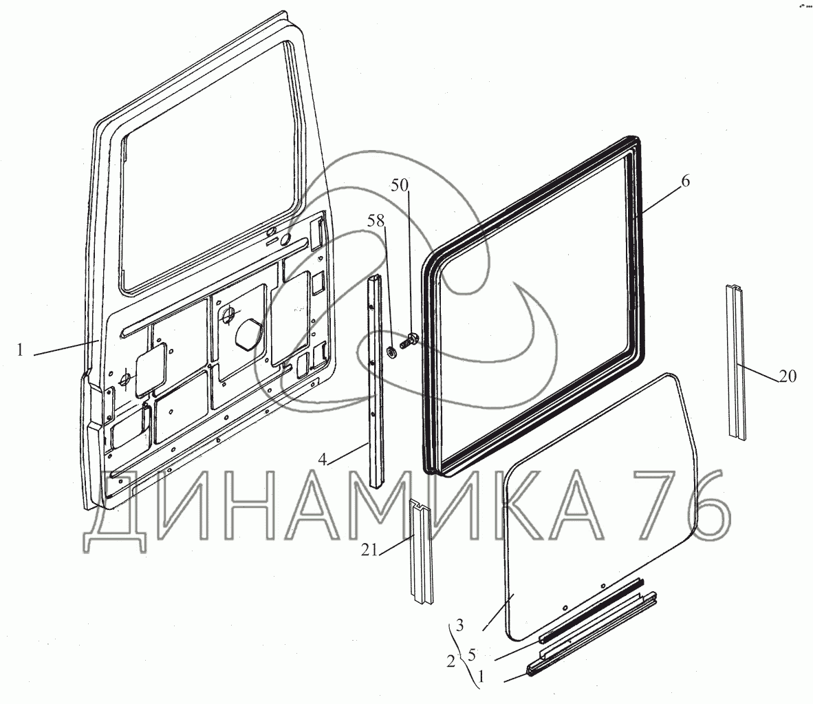Перечень комплектующих от Установка опускного стекла на МАЗ-530905