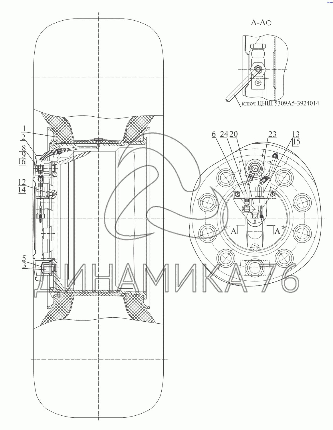 Перечень комплектующих от Установка передних колес 5309A5-3100005 на МАЗ-530905