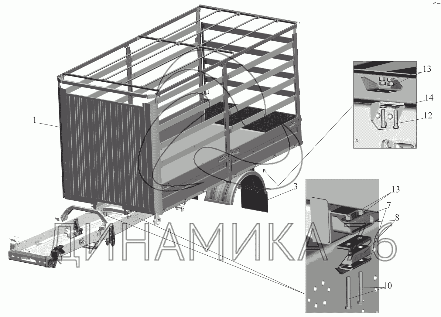 Перечень комплектующих от Установка платформы 530905-8500002 на МАЗ-530905