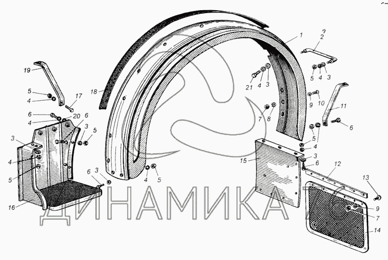 Перечень комплектующих от Крыло переднее и подножка на МАЗ-5335