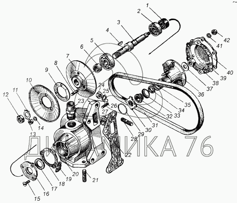 Перечень комплектующих от Насос водяной на МАЗ-5335