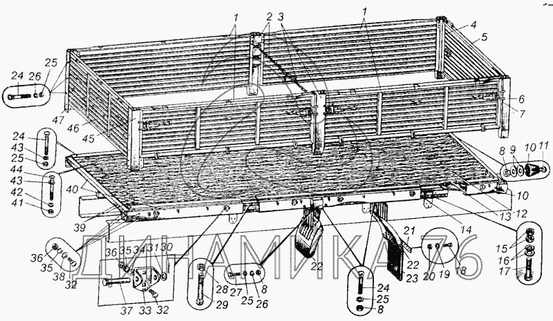 Перечень комплектующих от Платформа автомобиля МАЗ-5335 на МАЗ-5335