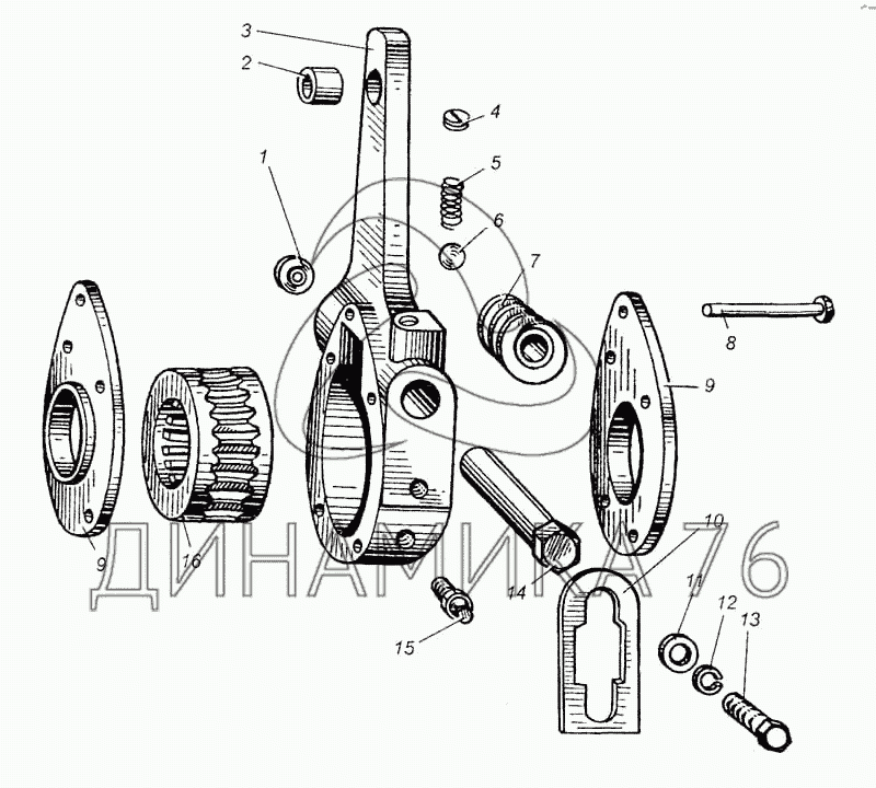 Перечень комплектующих от Рычаг регулировочный на МАЗ-5335