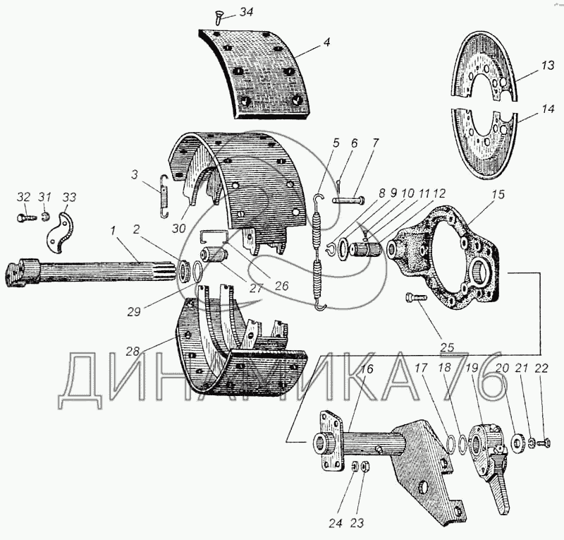 Перечень комплектующих от Тормоз рабочий задний на МАЗ-5335