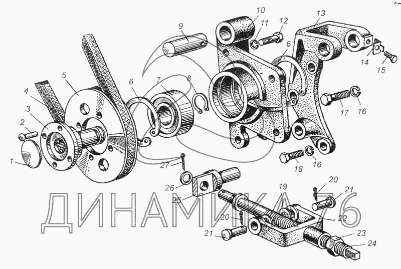 Перечень комплектующих от Устройство натяжное насоса на МАЗ-5335