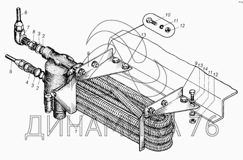 Перечень комплектующих от Влагоотделитель и его крепление на МАЗ-5335