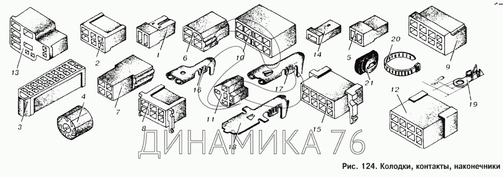 Перечень комплектующих от Колодки, контакты, наконечники на МАЗ-53366