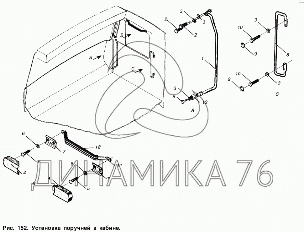 Установка поручней в кабине — МАЗ-53366: