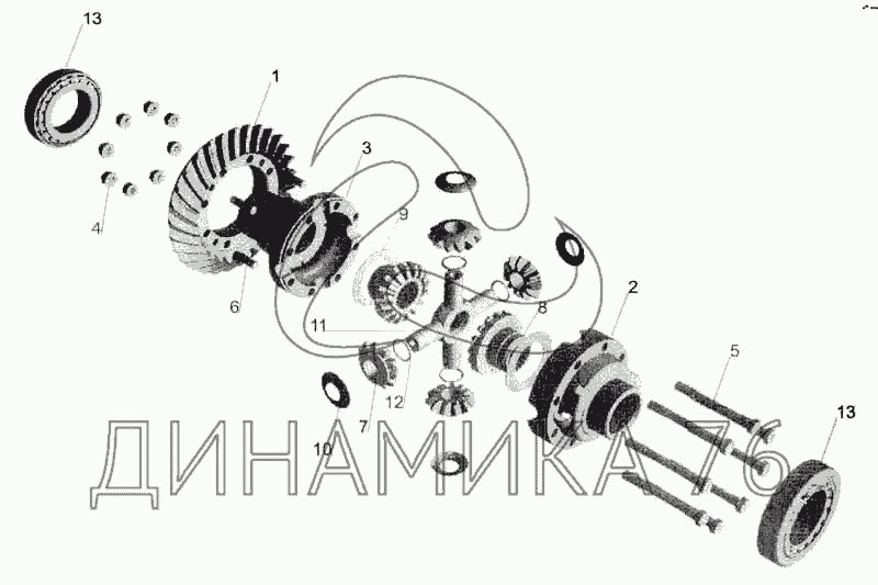 Перечень комплектующих от Мост задний МАЗ-533608. Дифференциал на МАЗ-5336