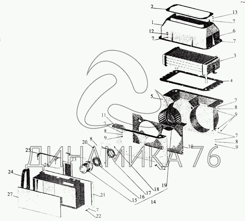 Перечень комплектующих от Отопитель на МАЗ-5336