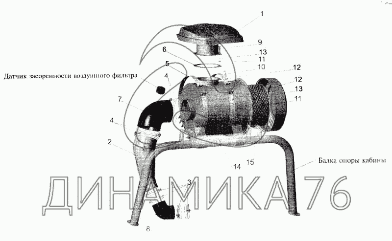 Система питания воздухом МАЗ-533702 на МАЗ-5336 (до 2005 г.)