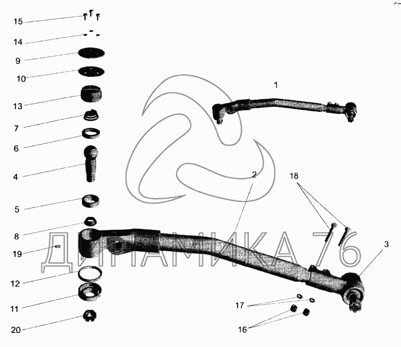 Перечень комплектующих от Тяга продольная на МАЗ-5336