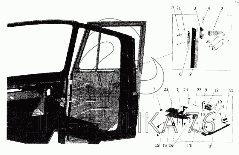 Схемы запчастей предназначены для справочных целей! Мы продаем не все запчасти от Установка ограничителя и петель двери на МАЗ-5336, представленные в этом списке.