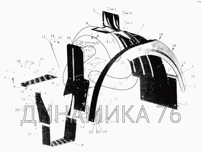 Перечень комплектующих от Установка оперения на малую кабину на МАЗ-5336