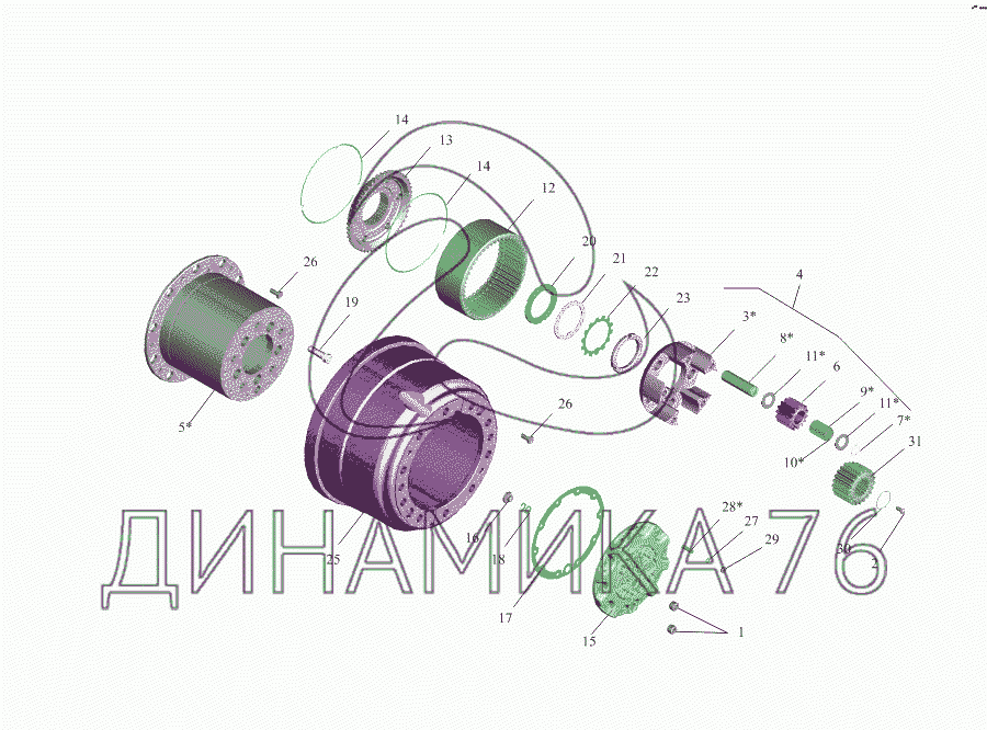 Перечень комплектующих от Колесный редуктор на МАЗ-533731