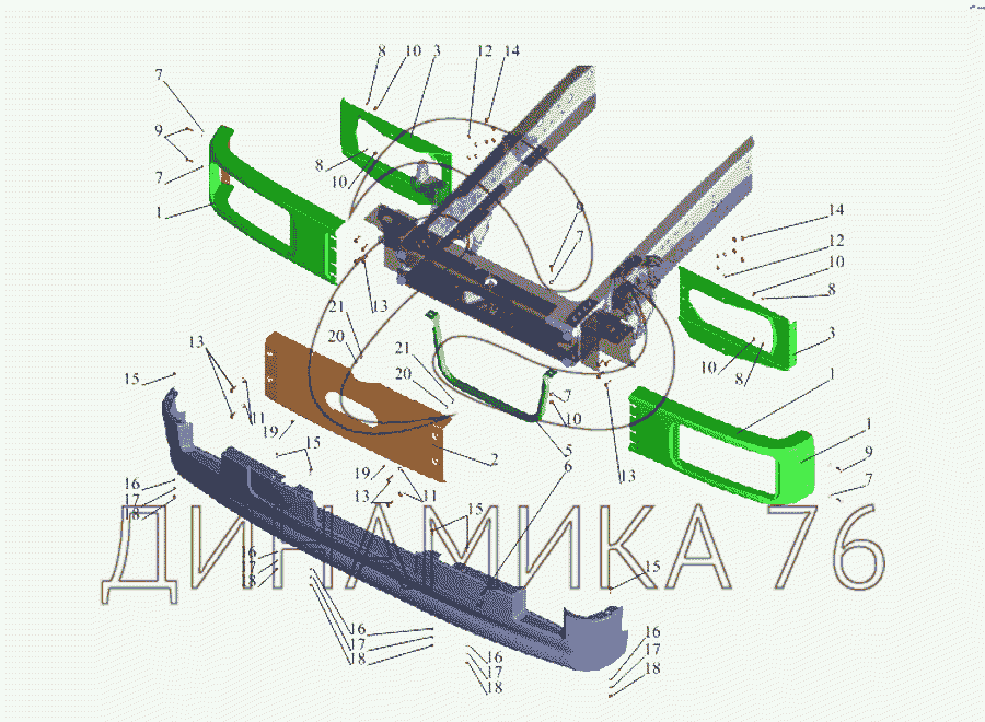 Перечень комплектующих от Крепление бампера на МАЗ-533731