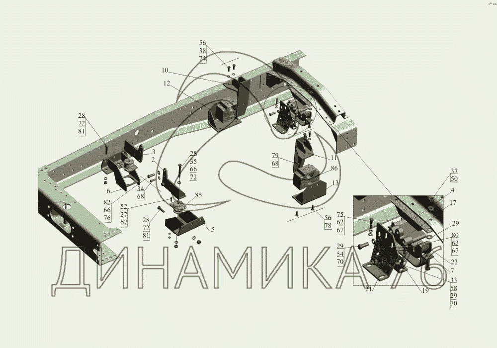 Схемы запчастей предназначены для справочных целей! Мы продаем не все запчасти от Крепление двигателя 533731-1001002-011 на МАЗ-533731, представленные в этом списке.