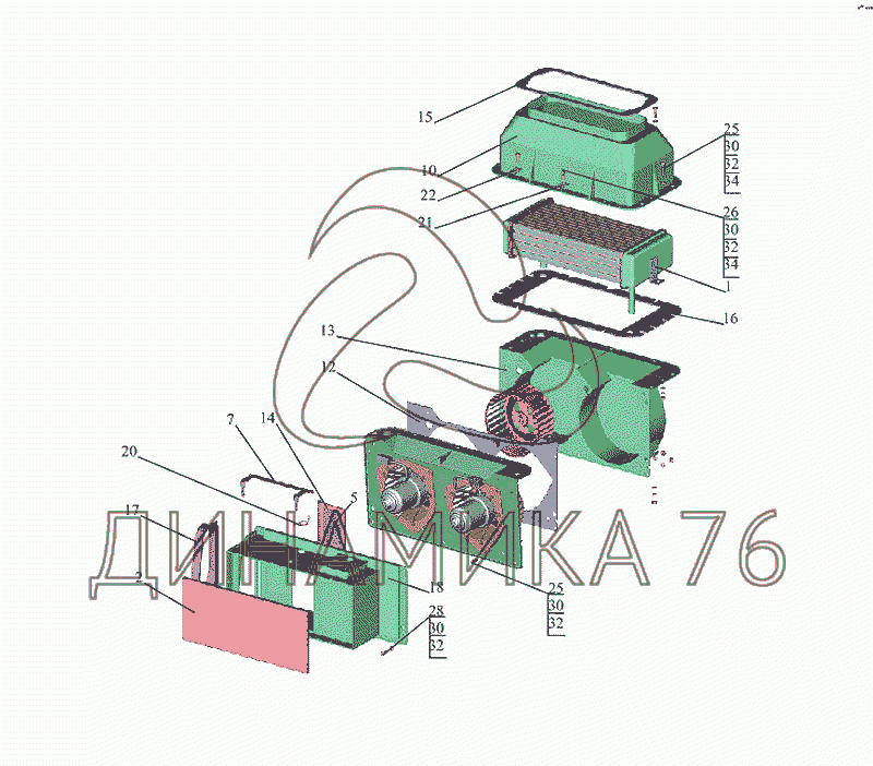Перечень комплектующих от Отопитель на МАЗ-533731